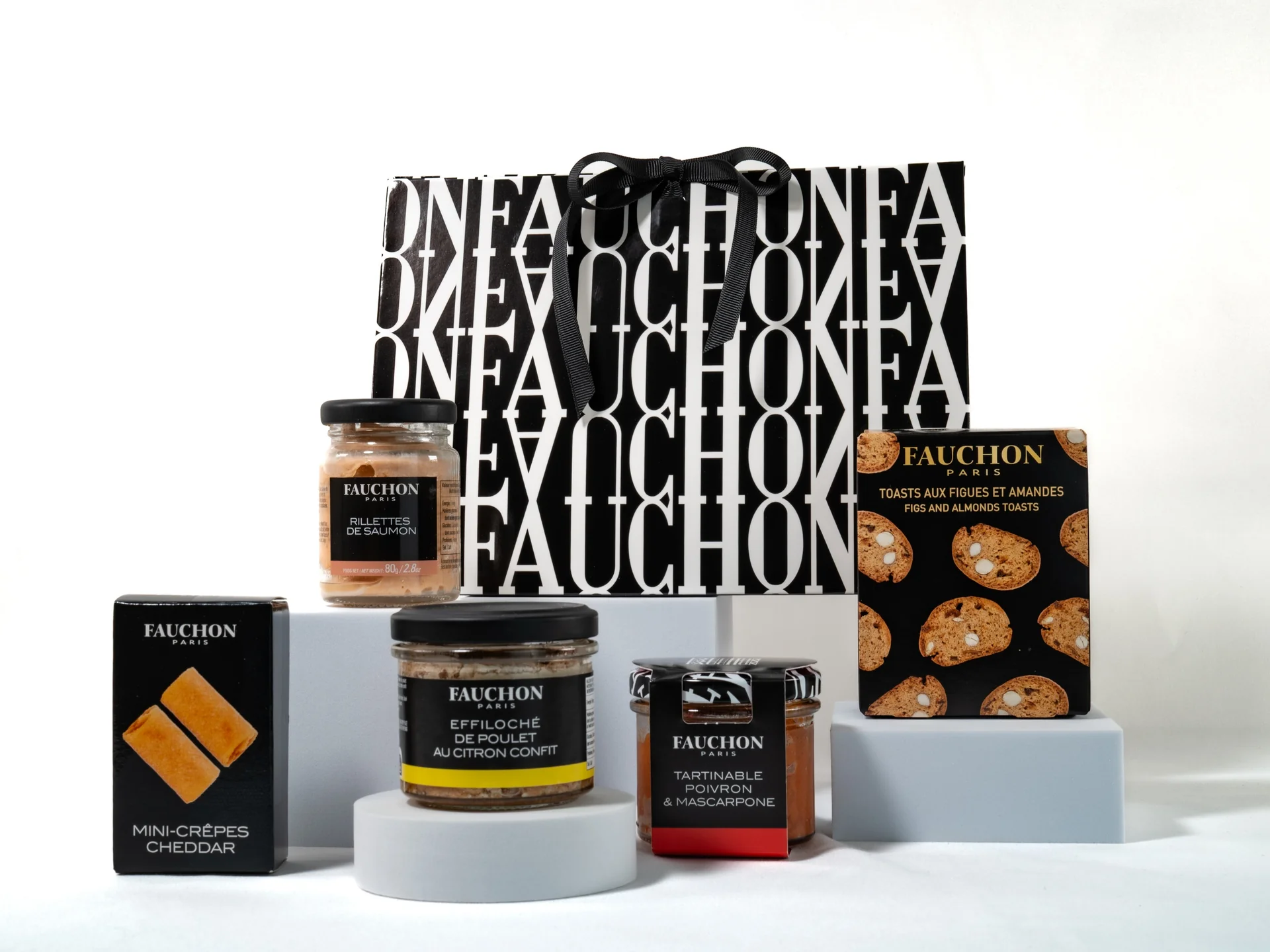 A gourmet gift box focused on savory, salty delicacies—ideal for lovers of refined, savory flavors. This “Prelude” selection may include artisanal spreads, rillettes, savory crackers, and other savory delicacies designed to be enjoyed during aperitif moments.